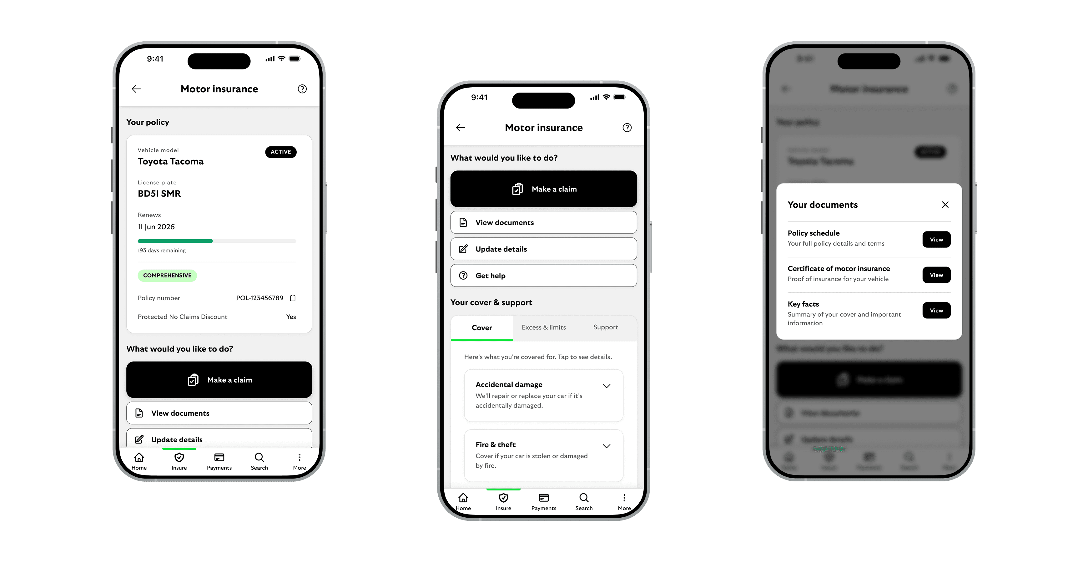 I designed a mobile Product Detail Page (PDP) for an active Motor Insurance policy within the Lloyds Bank app. The goal was to help customers quickly understand their cover, access key actions, and feel supported during stressful moments, especially when making a claim.